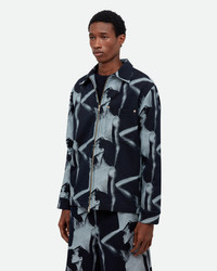 The Jet Zip Jacket Full zip denim jacquard jacket with an archival image woven into the fabric as part of the seasonal collaboration with Theaster Gates and the Black Image corporation. Reproduced images are sourced from the archives of the Johnson Publishing Company, publishers of Ebony and Jet magazines.