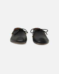 A womens slipper crafted in deerskin, presented in black.