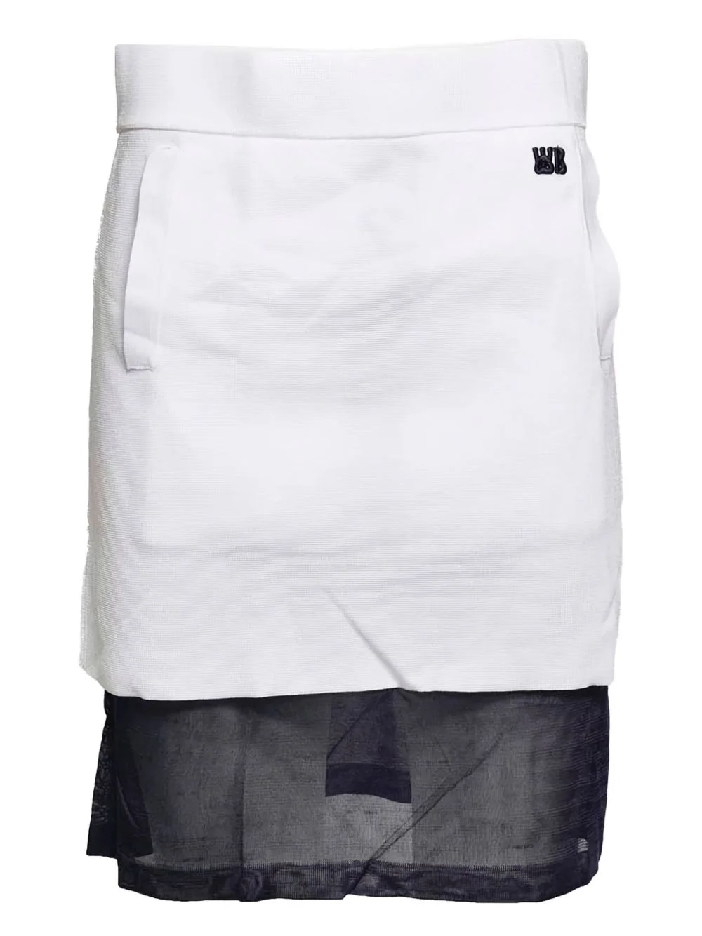 layered mini skirt Highlights - White - Two side welt pockets - Embroidered logo to the side - Contrasting border Imported Composition Viscose 63%, Nylon 37% Washing instructions Read Manufacturer Guidelines