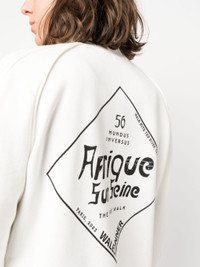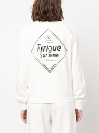 logo-embroidered zipped sweatshirt from Wales Bonner featuring ivory white, cotton blend, embroidered logo at the chest, graphic print to the rear, funnel neck, long sleeves, ribbed trim and straight hem. Size & Fit Model Measurements: Bust: 83cm Height: 178cm Hips: 87cm Waist: 62cm