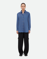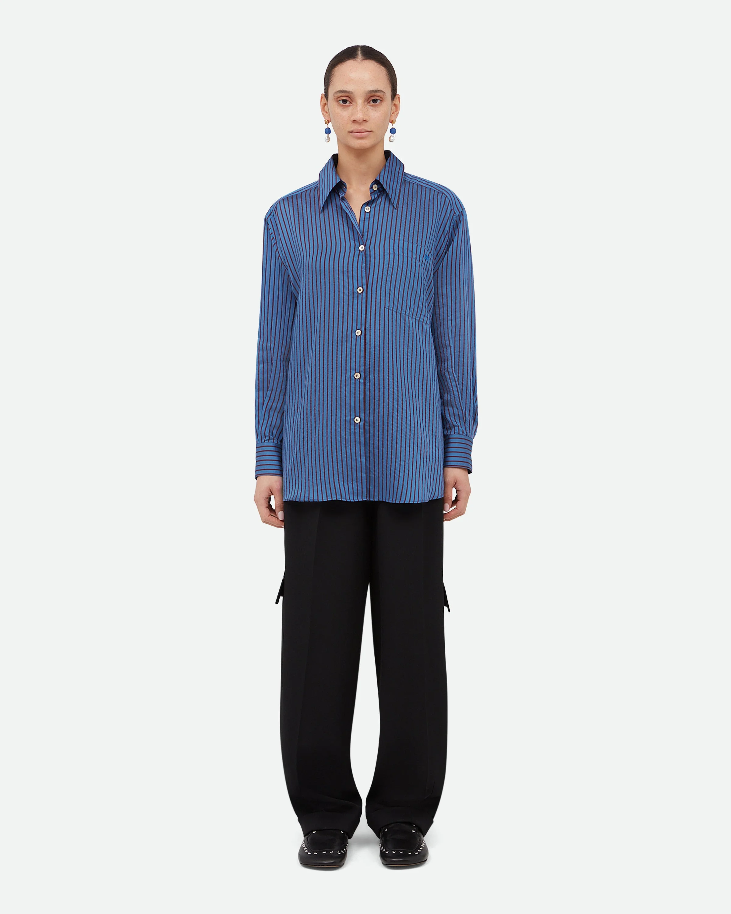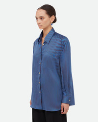 The Lotus Shirt Classic striped silk-blend shirt made in Italy with an embroidered logo at the breast pocket. - Mother of Pearl Buttons - Regular Fit - 80% Viscose, 20% Silk