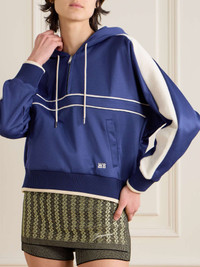 EDITORS'NOTES Wales Bonner blends athletic designs with cultural influences to create contemporary streetwear that's fresh and bold. This 'Mantra' hoodie is made from vibrant blue cotton-jersey contrasted by white stripes and has a generous hood and partially zipped neckline. Wear yours with the matching pants in our edit. SIZE & FIT Model measurements: - Fits true to size, take your normal size - Designed for a loose fit - Cropped length - Mid-weight, slightly stretchy fabric - Model is 180cm/ 5’11” and is wearing a size Small - Bust: 81cm/ 32" - Waist: 63cm/ 25" - Hip: 91cm/ 36" DETAILS & CARE - Blue cotton-jersey - Zip fastening along front - 100% cotton - Machine wash