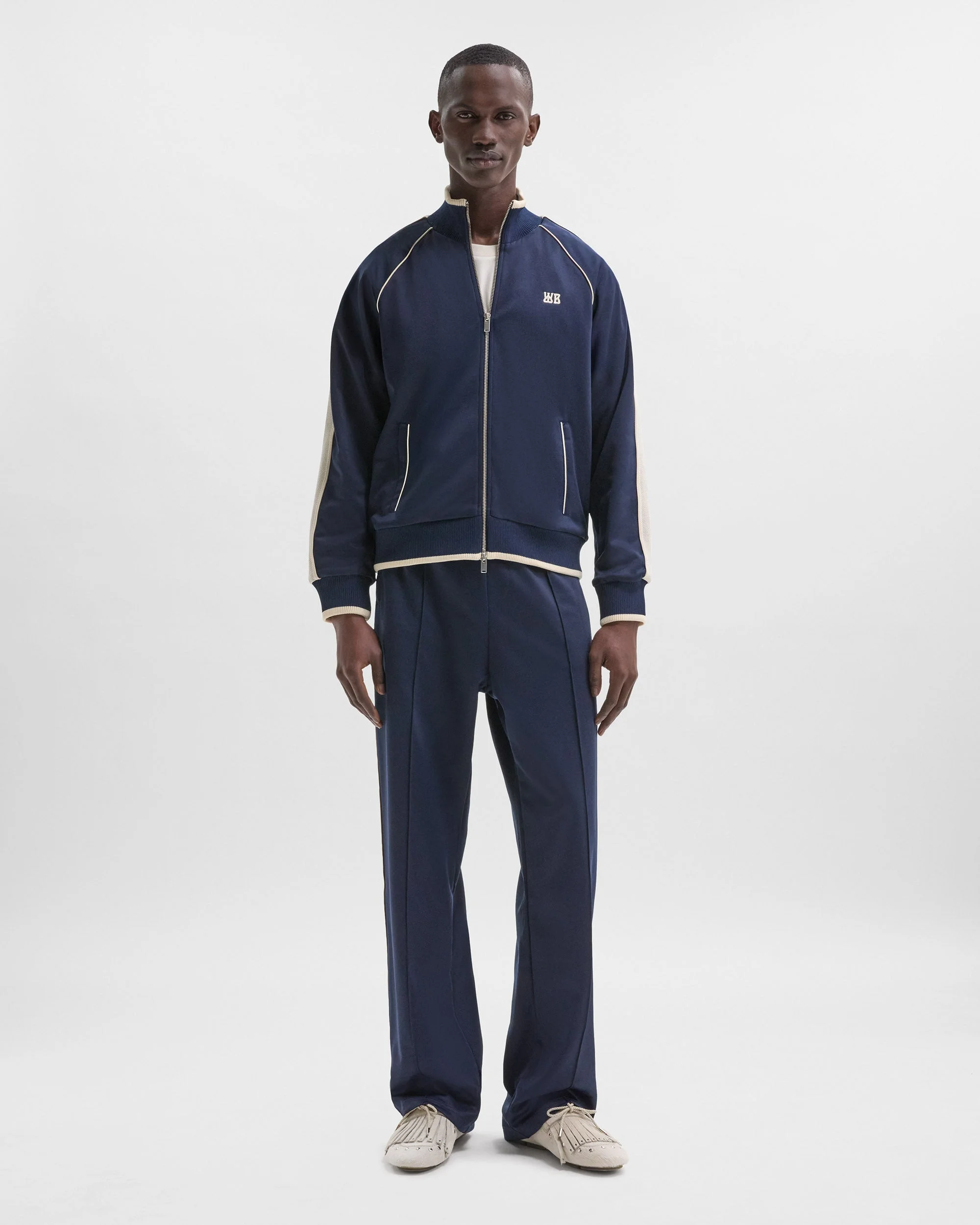 The Motion Track Pant Signature track pant in rust and ivory with crochet trim along the side seam, satin piping, and an embroidered logo. - Side Stripe Accent - Made in Portugal - 55% Polyester, 45% Cotton