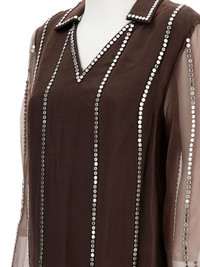 v-neck stud-embellished blouse Highlights - Brown - Silk - V-neck - Metal-stud details - Long sleeves Imported Composition Silk 100% Washing instructions Read Manufacturer Guidelines