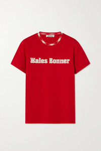 EDITORS'NOTES The graphic print on the back of Wales Bonner's 'Original' T-shirt commemorates the First Congress of Black Artists and Writers held in 1956 at the Sorbonne University in Paris. It's made from organic cotton-jersey with a bold logo appliquéd at the front. SIZE & FIT - Fits true to size, take your normal size - Designed for a slim fit - Mid-weight, stretchy fabric - Model is 180cm/ 5’11” and is wearing a size Small DETAILS & CARE - Red and white organic cotton-jersey, red and white jacquard - Slips on - 100% organic cotton; trim: 95% polyester, 5% elastane - Machine wash