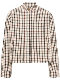 Path Harrington shirt jacket Highlights - Coffee brown - Light beige - Cotton - Check pattern - Funnel neck - Long sleeves with buttoned cuffs - Two front welt pockets - Straight hem - Internal toggle-fastening waistband - Concealed front zip fastening - When buying this unisex item, keep in mind that it is graded in standard men's sizing. Imported Composition Lining: Cotton 100% Outer: Cotton 100% SIZE & FIT Model measurements Height 5 ft 10 in(1.77 m) Bust/Chest 29.92 in(76 cm) Hips 34.25 in(87 cm) Waist 23.62 in(60 cm) FittingInformation This piece is unisex – if you usually select men's sizing expect a loose fit throughout; if you usually select women's sizes, expect an oversized fit The internal drawstring at the hem allows for fitted preferences Made from a midweight non-stretch fabric Measurement CHEST 52.75 in(134 cm) SLEEVE LENGTH 26.77 in(68 cm) LENGTH 25.98 in(66 cm) WAIST 51.96 in(132 cm)