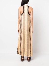 pearl-embellished cotton dress Soulful silhouettes enlivened by bold prints continue to take centre stage at Wales Bonner for SS23, as evidenced by this neutral halterneck dress. It's elevated by vibrant abstract patterning and circular mother-of-pearl disc charms, emphasising the confident mood. Imported Composition Cotton 100%, Viscose 100%, Mother of Pearl 100% SIZE & FIT Model measurements Height 5 ft 10 in(1.79 m) Bust/Chest 33.07 in(84 cm) Hips 35.82 in(91 cm) Waist 24.01 in(61 cm) FittingInformation Designed to be unstructured, offering a loose fit throughout Made from a midweight non-stretch fabric This piece fits true to size – take your usual size Washing instructions Hand Wash