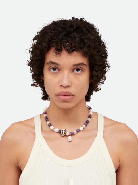 A seasonal iteration of the signature Dream Necklace, crafted from recycled glass beads made by artisans in Ghana and Kenya along with freshwater pearls and a Swarovski crystal pendant. - Gold-Plated Brass - Artisanal Beads - Made in Italy