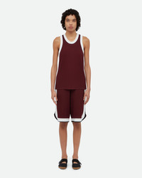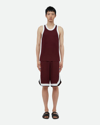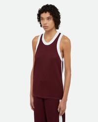 The Rio Tank Top A sportswear influenced silhouette rendered as a fully-fashioned merino knit with a soft-mesh texture. White contrast ribs are accompanied by an embroidered logo at the back neck. - Regular Fit - Embroidered Logo - 45% Wool, 46% Viscose, 9% Nylon