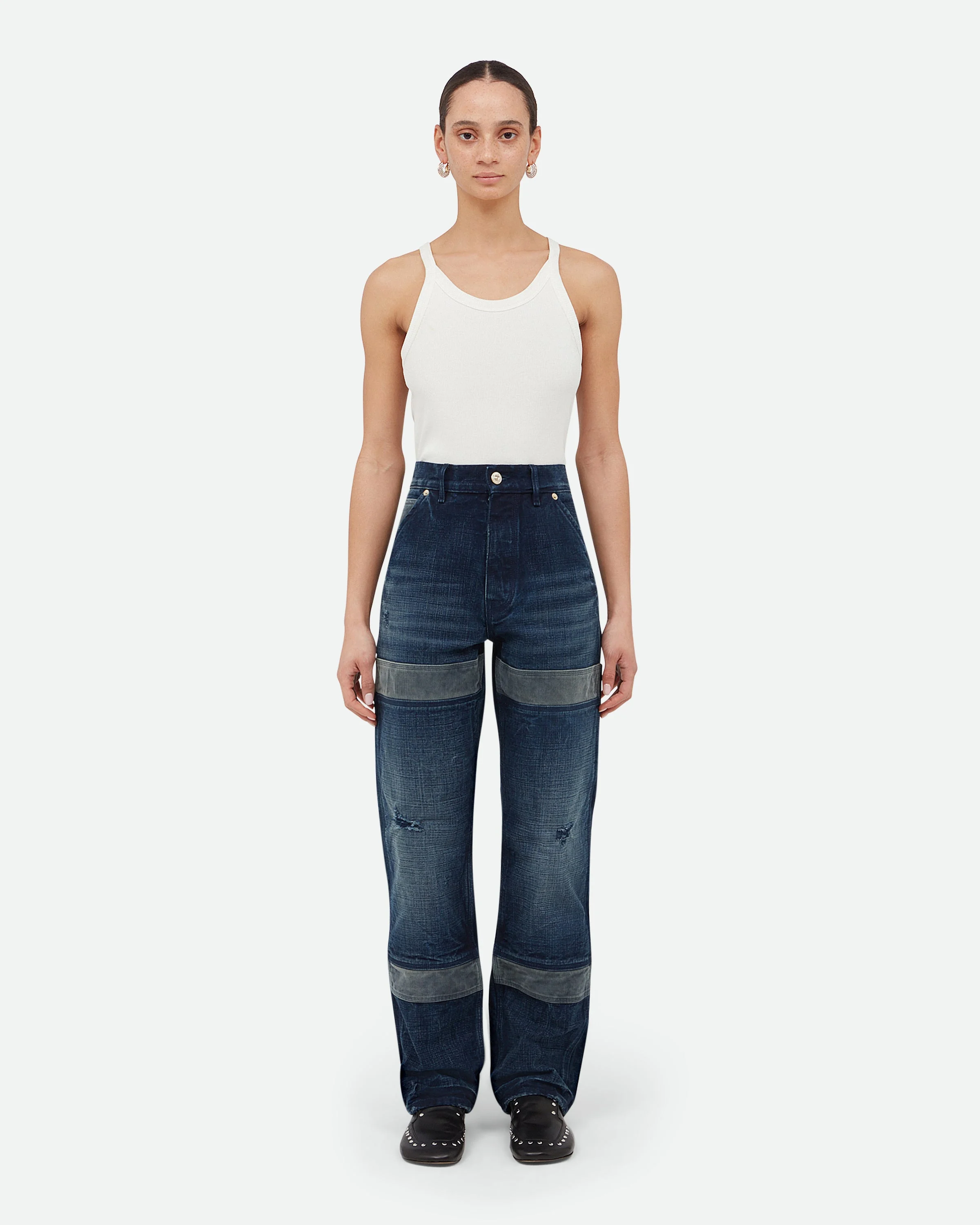 The Sierra Denim Trousers Natural indigo-dyed Japanese canvas is crafted in a five-pocket trouser silhouette with corduroy contrasts. Due to the artisanal nature of the fabric, each piece is unique and will be shaped by the wearer over time. Waist size is listed in inches. - Straight Fit - Distressed Details - 100% Cotton