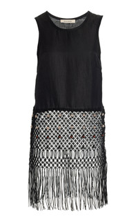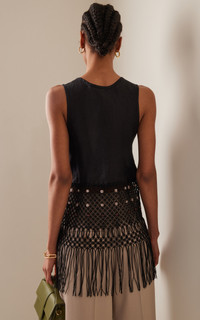 Vision Macrame-Fringed Cotton-Linen Top black