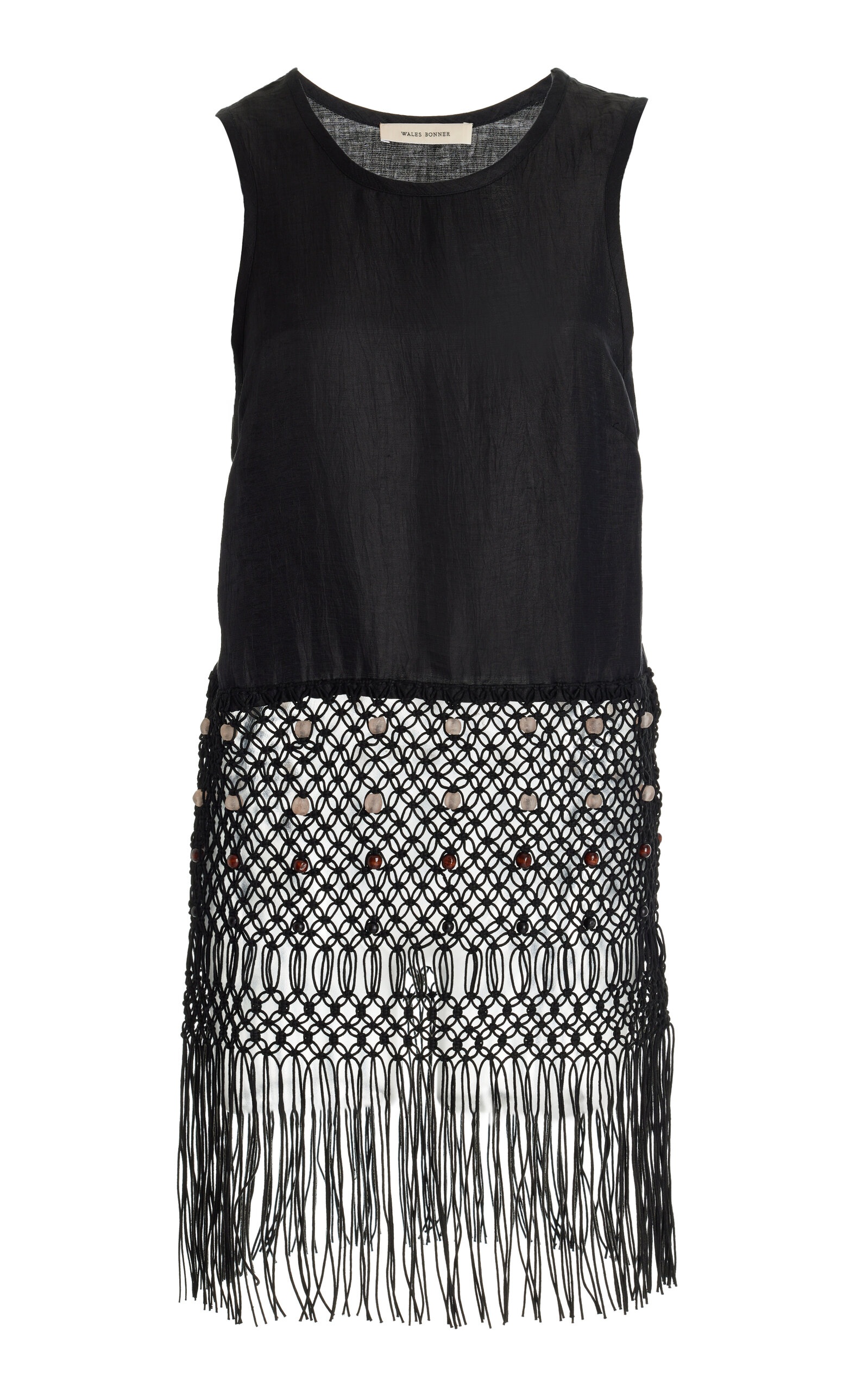 Informed by broad research encompassing critical theory, musical composition, literature and history, Grace Wales Bonner embraces a multiplicity of perspectives, proposing a distinct notion of cultural luxury that infuses European heritage with an Afro Atlantic spirit. The 'Vision' top features an airy cotton-linen tank with a fringed macrame hem decorated with beads. Layer it over black trousers or a knit maxi skirt. PRODUCT DETAILS - Slip on - Composition: cotton, linen - Dry clean - Imported SIZE & FIT - Our model is 178cm/ 5'10" and wearing a size IT 38 - Fits true to size, our fit specialist recommends taking your normal size - Designed for a slim fit