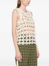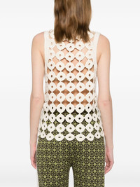 Stanza cotton vest Highlights - Ivory white - Cotton - Crochet knit - Round neck - Sleeveless - Scallop hem Imported Composition Cotton 100% SIZE & FIT Model measurements Height 5 ft 9 in(1.75 m) Bust/Chest 31.1 in(79 cm) Hips 36.22 in(92 cm) Waist 25.19 in(64 cm) FittingInformation Designed for a slim fit that sits just away from the body offering a close yet comfortable fit Made with a midweight knit, this piece offers some stretch This piece fits true to size – take your usual size