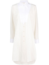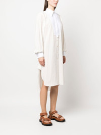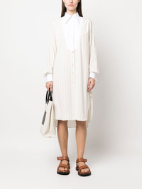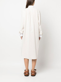 striped midi dress Wales Bonner showcases her unique sense of style with this striped midi dress. A pointed flat collar and front tie offer a menswear edge, while the flowy construction and long billowy sleeves relax this piece. Made in Italy Composition Cotton 100% SIZE & FIT Model measurements Height 5 ft 10 in(1.77 m) Bust/Chest 35.03 in(89 cm) Hips 35.03 in(89 cm) Waist 23.62 in(60 cm) FittingInformation This piece fits true to size. We recommend you get your regular size Cut for a loose fit Made with a mid-weight non-stretch fabric Washing instructions Hand Wash