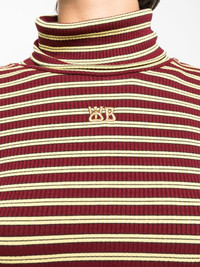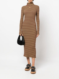 striped roll neck knitted dress wine red/dark yellow fine knit horizontal stripe pattern roll neck long sleeves maxi Imported Composition Viscose 97%, Spandex/Elastane 3% SIZE & FIT Model measurements Height 5 ft 11 in(1.8 m) Bust/Chest 31.49 in(80 cm) Hips 35.43 in(90 cm) Waist 24.4 in(62 cm) FittingInformation This piece fits true to size. We recommend you get your regular size Cut for a slim fit Made with a mid-weight stretch fabric