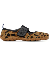 Low-top calf-hair Mary Jane-style sneakers in tan and brown. · Leopard pattern printed throughout · Logo embossed at elasticized velcro strap · Buffed calfskin trim at padded collar · Logo-printed webbing pull-loop at heel · Jersey lining · Treaded Vibram® rubber sole Supplier color: Tan Upper: calfskin, textile. Sole: rubber. Made in Italy 251752F128012