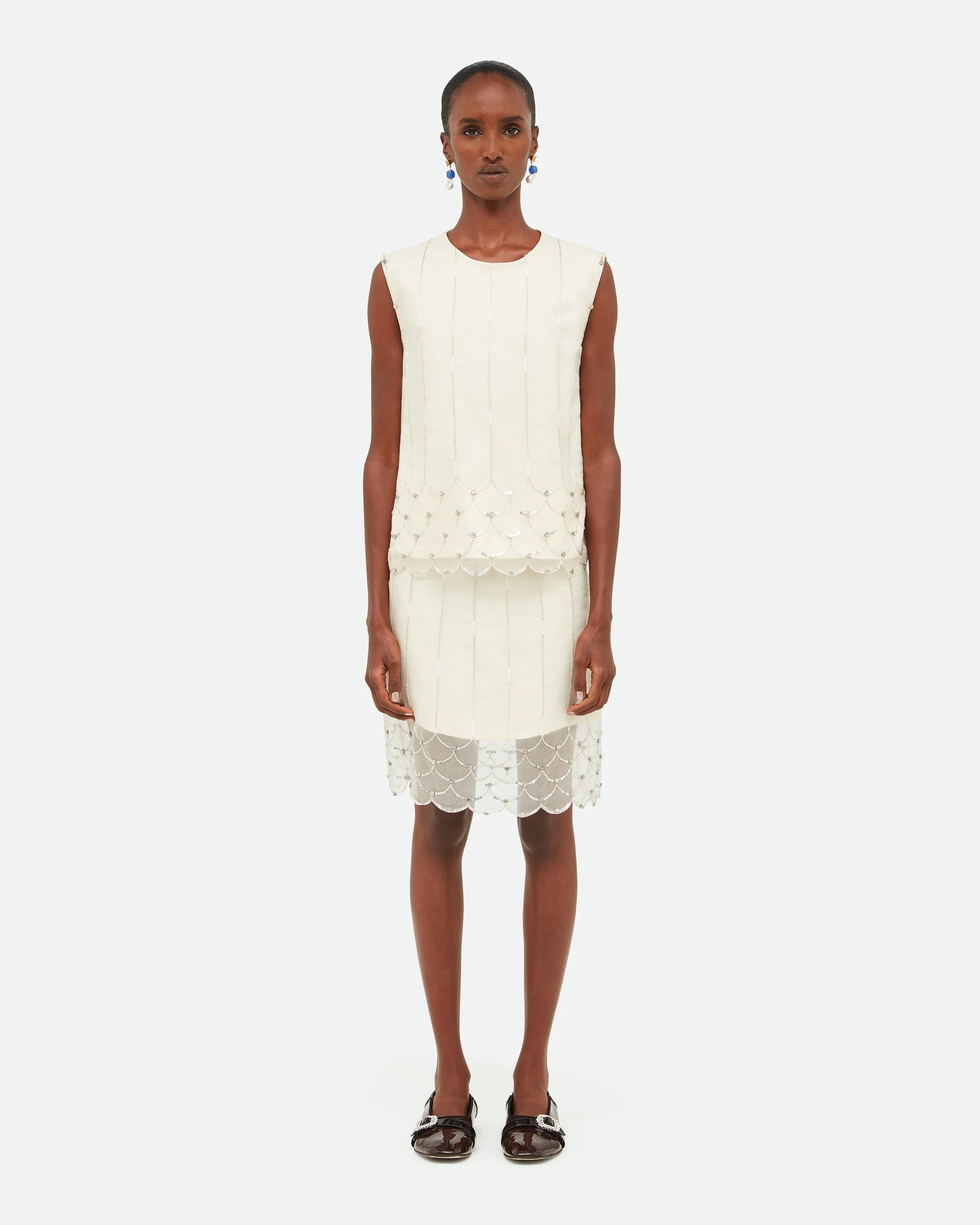 A womens shirt crafted in embroidered organza, presented in ivory. Composition:100% Silk Organza