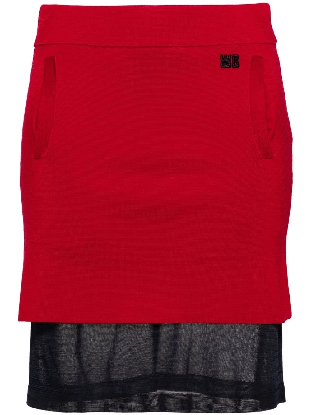 Verse mini skirt Highlights - Red/navy blue - Knitted construction - Slip-on style - Stretch-design - Panelled design - Embroidered logo to the front - Two front welt pockets - Layered details - Straight hem Imported Composition Viscose 63%, Nylon 37% SIZE & FIT Model measurements Height 5 ft 10 in(1.77 m) Bust/Chest 31.88 in(81 cm) Hips 36.22 in(92 cm) Waist 24.01 in(61 cm) FittingInformation This mini-length skirt is intended to be worn just below the waist The elasticated waist allows for a comfortable fit Made with a midweight knit, this piece offers some stretch
