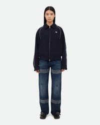 The Voice Jacket Navy Harrington silhouette crafted in a technical twill fabric with contrast piping and logo embroidery.