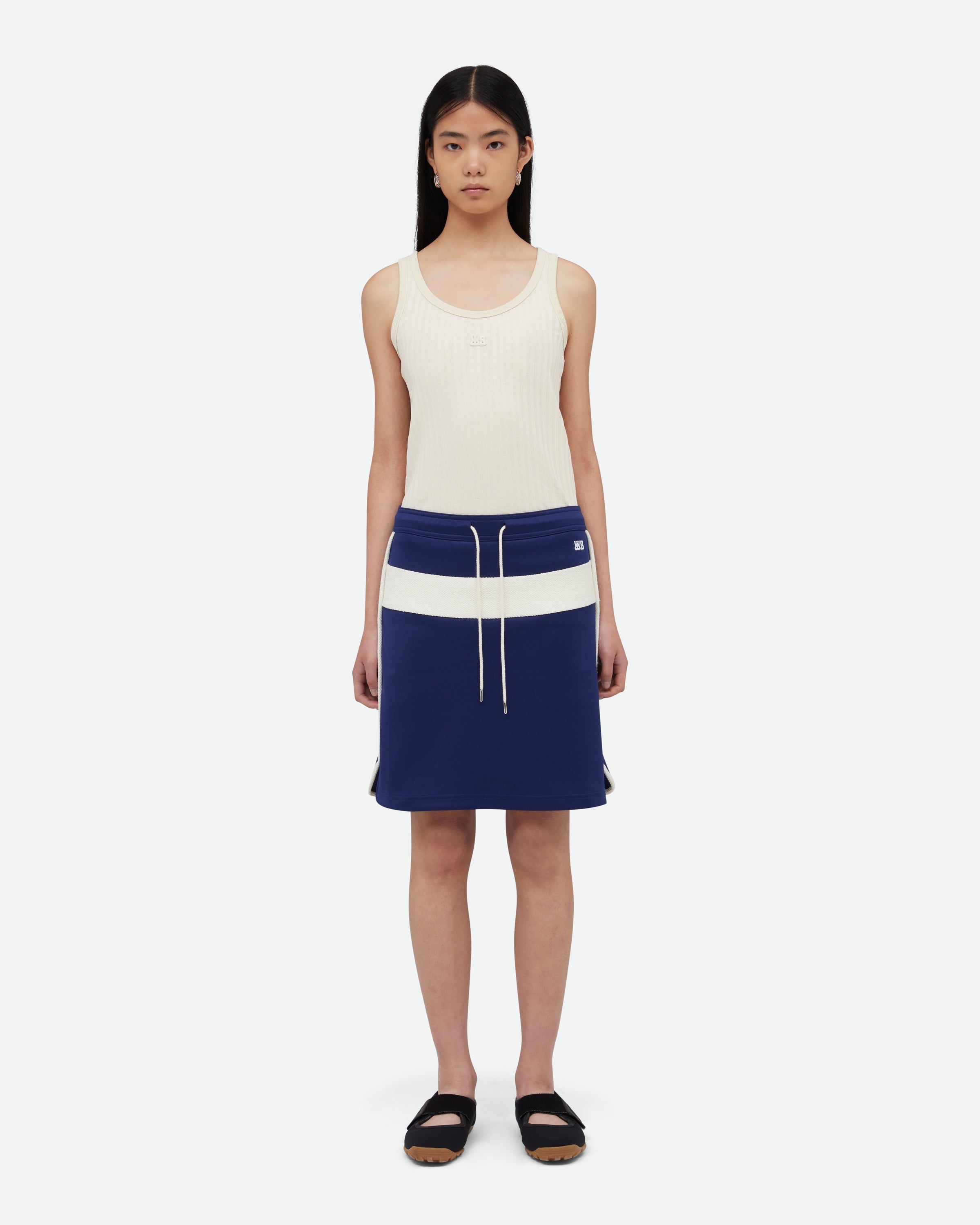 The Mantra Skirt A straight fit skirt with textured jersey side panels, side seam pockets and an embroidered logo. - Knee Length - Contrast Panels - 55% Polyester, 45% Cotton