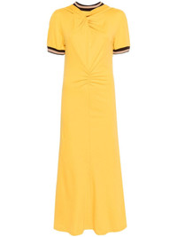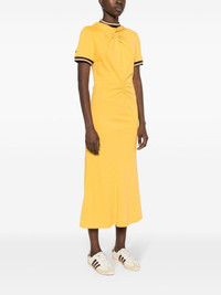 Wing logo-embroidered dress Highlights - Turmeric yellow - Organic cotton - Jersey texture - Gathered detailing - Draped detailing - Embroidered logo at the sleeve - Patch detail at the sleeve - Contrasting trim - Round neck - Short sleeves - Unlined - Straight hem - Slip-on style Imported Composition Organic Cotton 100% SIZE & FIT Model measurements Height 5 ft 11 in(1.8 m) Bust/Chest 32.67 in(83 cm) Hips 36.22 in(92 cm) Waist 24.4 in(62 cm) FittingInformation Designed for a close fit throughout Made from a midweight non-stretch fabric, this piece offers minimal elasticity when worn This piece fits true to size – take your usual size