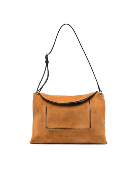 suede shoulder bag Highlights - Camel brown - Adjustable shoulder strap - Foldover top with magnetic fastening - Main compartment Made in Italy Composition Outer: Calf Suede 100% SIZE & FIT Model measurements Height 5 ft 11 in(1.8 m) Bust/Chest 31.49 in(80 cm) Hips 36.61 in(93 cm) Waist 24.4 in(62 cm) Measurement DEPTH 2.75 in(7 cm) HEIGHT 5.9 in(15 cm) WIDTH 9.44 in(24 cm)