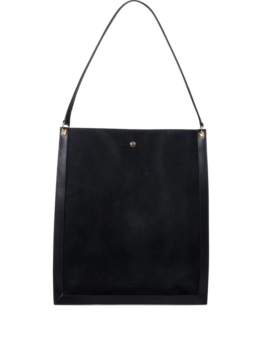 top-handle suede tote bag Highlights - Black - Suede texture - Leather trim - Top handle - Gold-tone hardware - Button fastening Imported Composition Outer: Calf Suede 100% Lining: Suede 100% SIZE & FIT Measurement DEPTH 2.36 in(6 cm) HEIGHT 15.74 in(40 cm) STRAP 10.62 in(27 cm) WIDTH 13.77 in(35 cm)