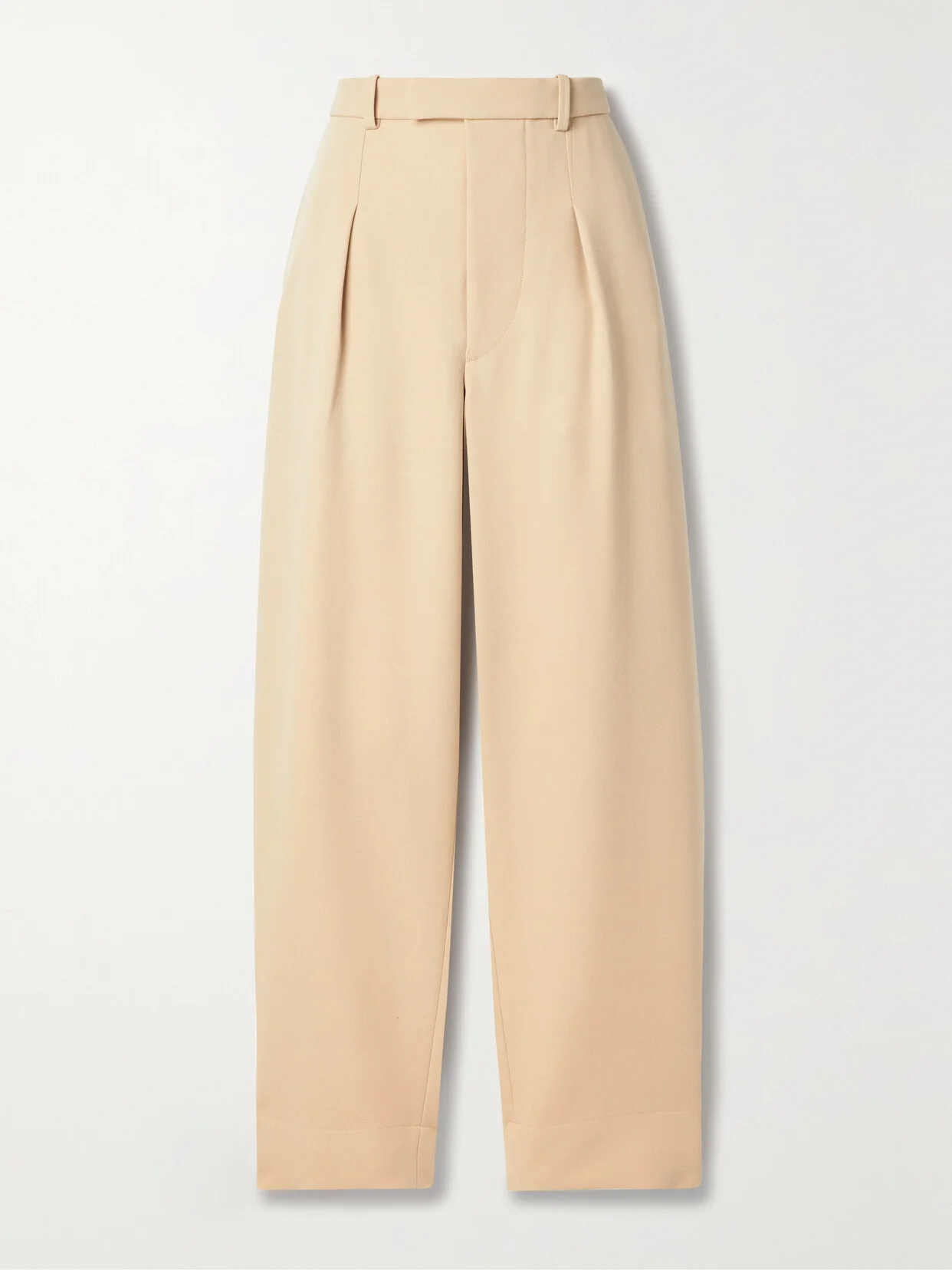 + Hailey Bieber Pleated Wool Wide-leg Pants