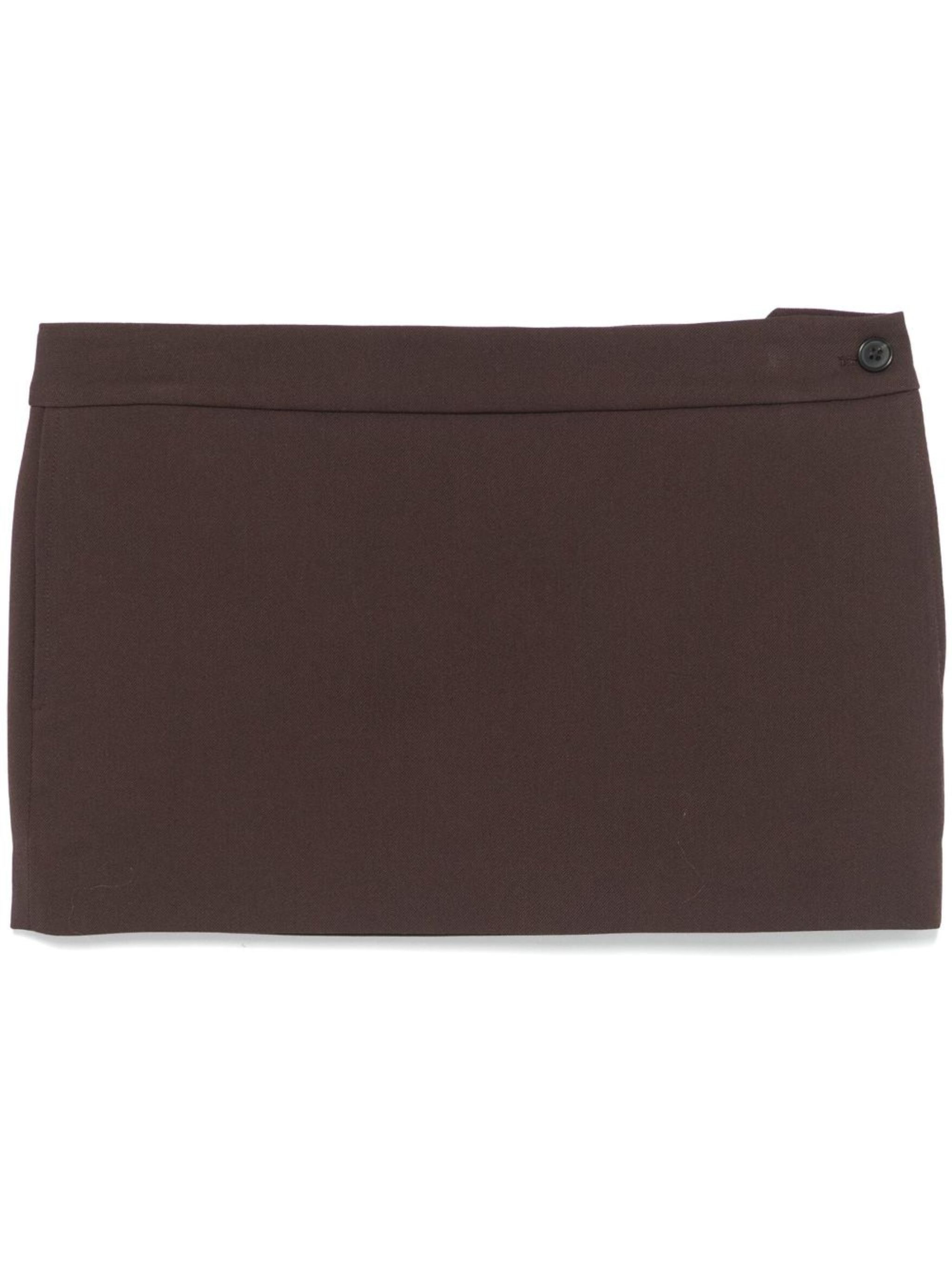 coffee brown side button and zip fastening two side inset pockets rear button-fastening pocket dart detailing Size & Fit Model Measurements: Height: 1.78 m Bust/Chest: 84.0 cm Hips: 92.0 cm Waist: 62.0 cm Model wears size S Fabric and Care Designer Style ID: W2107R15 Designer Colour: DARK BROWN - DARK BROWN Composition: Virgin wool 100% Washing instructions: Dry Clean Only Made in Slovakia
