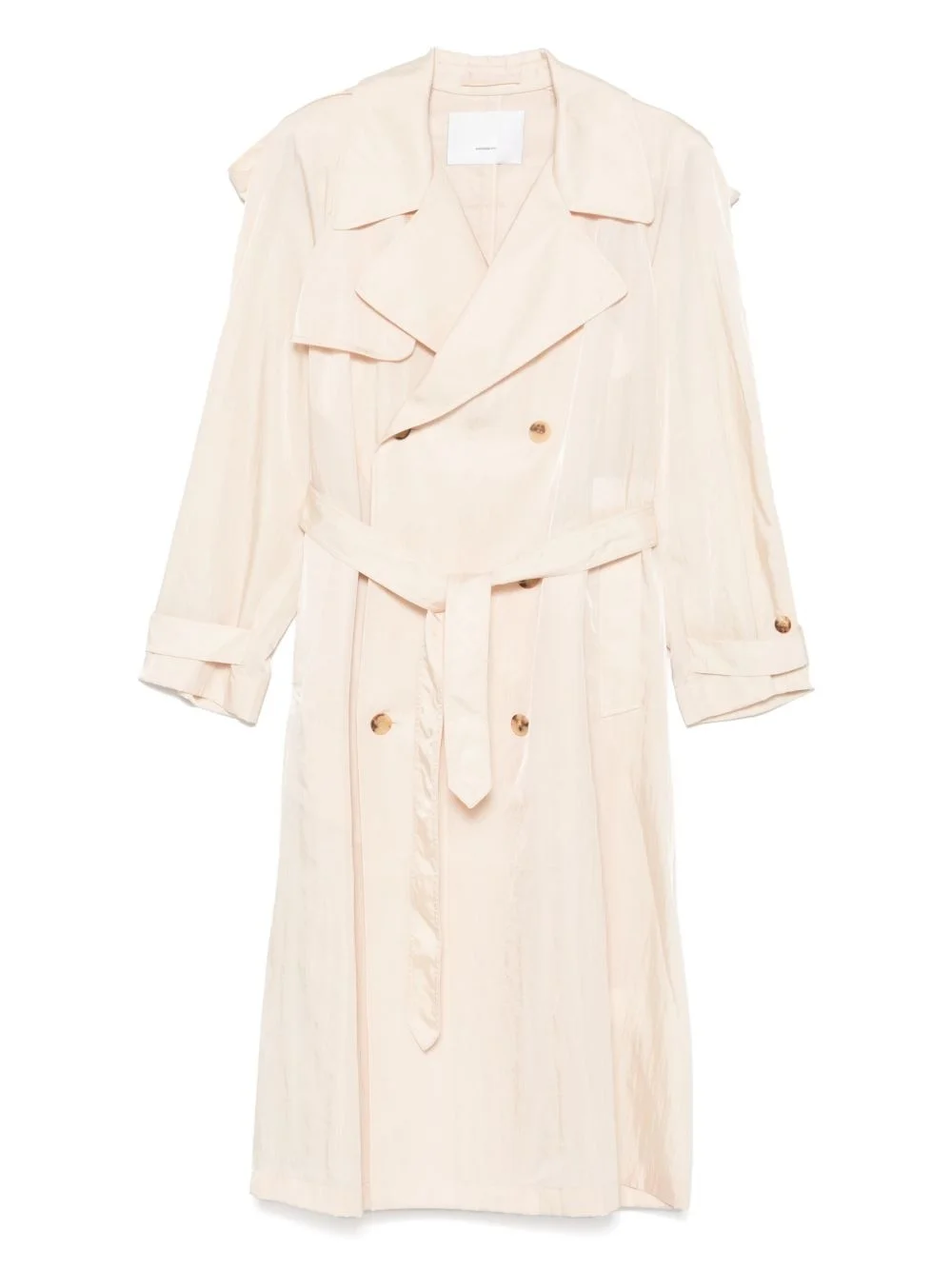 belted trench coat Highlights - Light beige - Double-breasted button fastening - Epaulettes - Storm flap - Belted cuffs Made in Italy Composition Lining: Cotton 100% Outer: Recycled Polyamide 100%