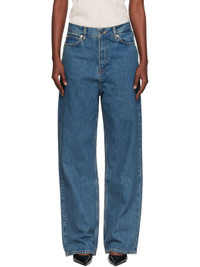 Loose-fit 14 oz non-stretch denim jeans. · Fading and whiskering throughout · Low-rise · Belt loops · Five-pocket styling · Zip fly · Logo patch at back waistband · Contrast stitching in tan Supplier color: Indigo 100% cotton. Made in Turkey 252277F069001