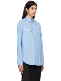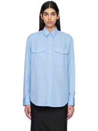 Cotton poplin shirt. · Spread collar · Button closure · Flap pockets at chest · Shirttail hem · Adjustable single-button barrel cuffs · Box pleat at back yoke Supplier color: Blue 100% cotton. Made in Romania 231277F109001