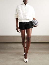 EDITORS'NOTES WARDROBE.NYC's collections are built on the idea of creating a personal uniform, so these shorts are designed to work for any occasion. They're cut in a high-waisted profile from smooth, bonded stretch-jersey and detailed with pintucks for a tailored look. The thick elasticated waistband provides comfort and definition. SIZE & FIT Model measurements: - Fits true to size, however those who are between sizes should take the smaller size - High-rise, designed for a slightly loose fit - Elasticated at the waist for a comfortable fit - Mid-weight, non-stretchy fabric - Model is 177cm/ 5'10" and is wearing a size XSmall - Bust: 80cm/ 31.5" - Waist: 60cm/ 23.5" - Hip: 89cm/ 35" DETAILS & CARE - Black stretch-jersey - Concealed button and zip fastening at side - 50% viscose, 39% polyamide, 11% elastane - Dry clean