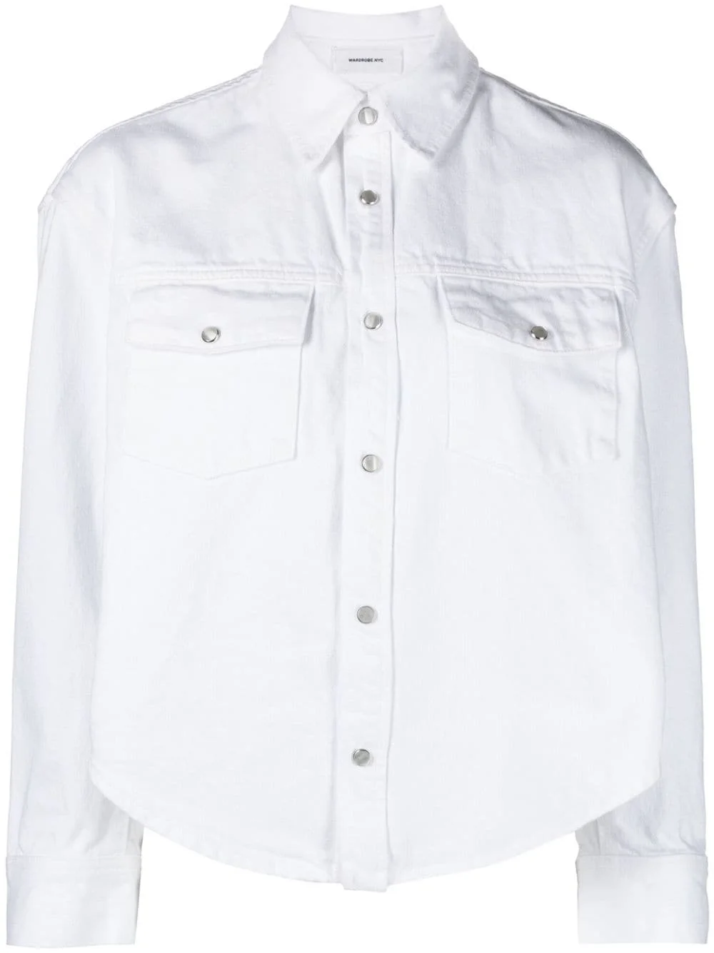 cropped denim jacket Made from crisp white cotton, this Wardrobe.NYC denim jacket is cut to a cropped silhouette, showcasing the label's aim to create pieces for a 'modern urban life'. Highlights - White - Cotton - Denim - Classic collar - Front press-stud fastening - Drop shoulder - Long sleeves - Press-stud fastening cuffs - Two button-fastening chest pockets - Curved hem - Cropped Imported Composition Cotton 100% SIZE & FIT Model measurements Height 5 ft 11 in(1.8 m) Bust/Chest 31.49 in(80 cm) Hips 35.82 in(91 cm) Waist 24.8 in(63 cm) FittingInformation Designed for a relaxed fit, this piece allows for comfort and movement when worn Made from a midweight non-stretch fabric This piece fits true to size – take your usual size Washing instructions Machine Wash