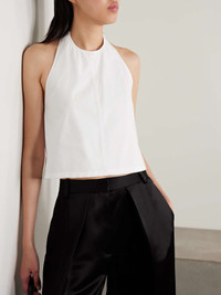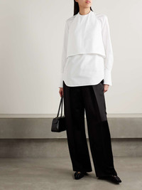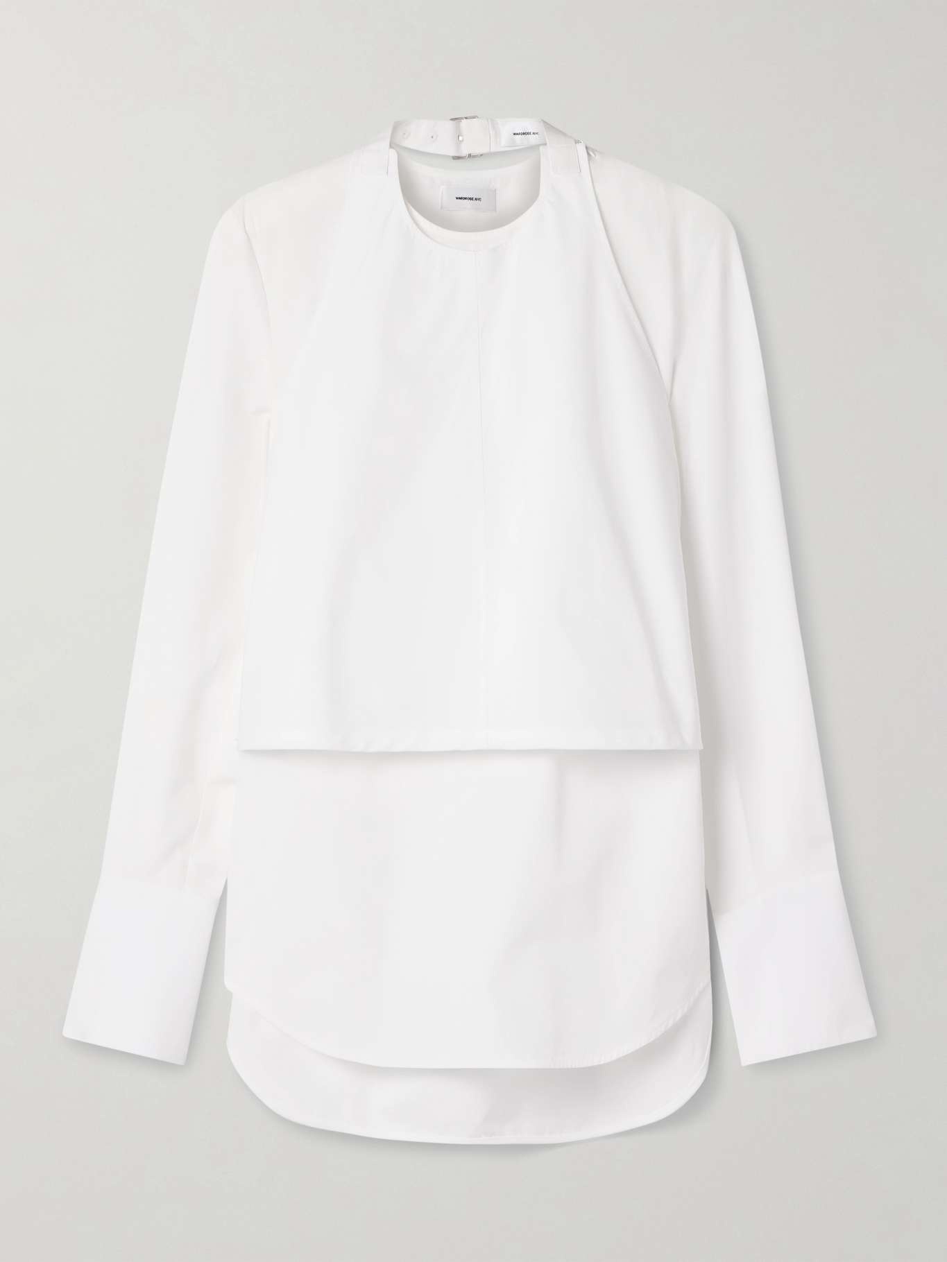 EDITORS'NOTES WARDROBE.NYC's clothing is meant to be "a timeless and honest expression" of your own personal style. Two designs in one, this layered shirt comes with a buckled halterneck top that can also be worn separately. The exaggerated cuffs add a sophisticated feel. SIZE & FIT Model measurements: - Fits true to size, take your normal size - Designed for a loose fit - Intended to be worn multiple ways - Lightweight, non-stretchy fabric - Model is 177cm/ 5'10" and is wearing a size XSmall - Bust: 79cm/ 31” - Waist: 61cm/ 24” - Hip: 89cm/ 35” DETAILS & CARE - White cotton-poplin - Concealed zip fastening along side - 100% cotton - Machine wash