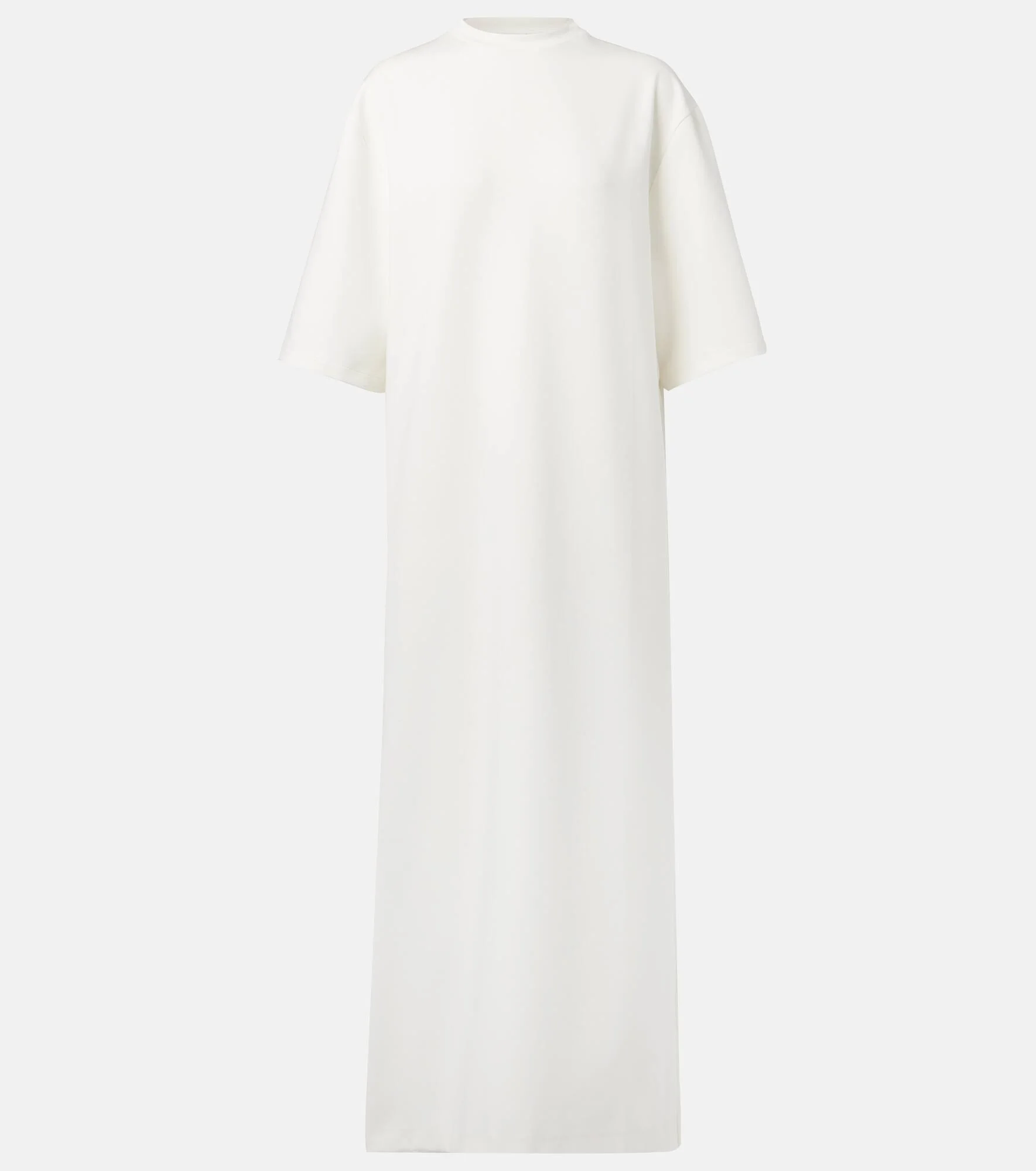 Wardrobe.NYC's elegant everyday essentials are produced in limited quantities with versatility, supreme quality, and modern urban life at their core. Made from a stretchy cotton blend, this T-shirt dress is cut in a maxi length. Product Details - Material: 74% cotton, 18% polyamide, 8% elastane - Care instructions: dry clean - Made in Portugal - Designer color name: Off White - Item color: ivory - Item number: P01059001 Size & Fit - True to size - Dropped shoulders - Designed for a loose fit - Slightly stretchy fabric - slit length 57cm-22.5" - The model seen in the picture is 178cm-5'10" and wearing a size XS