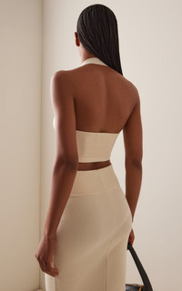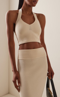 The brainchild of Vogue Australia stylist Christine Centenera and designer Josh Goot, Wardrobe.NYC represents the ultimate in luxurious staples. Think: minimalist blazers, button-down shirts, leggings, and puffer jackets tweaked to utter perfection—courtesy of Goot’s design precision and Centenera’s legendary styling know-how. This wide-ribbed cotton top has an uninterrupted halter, angled V-neck and a slim fit to the waist. Combine this piece with the coordinating maxi. PRODUCT DETAILS - Resort ‘26 - Slip on - Composition: 100% cotton - Dry clean - Made in Italy