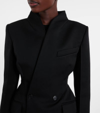 Wardrobe.NYC's elegant everyday essentials are produced in limited numbers with the needs of modern urban life in mind. This tailoring-inspired minidress is crafted from crepe and features darts at the waist, as well as a double-breasted buttoned front. Product Details - Material: 53% polyamide, 47% wool - Care instructions: dry clean - Made in Slovakia - Designer color name: Black - Item color: black - Lining: 70% acetate, 30% cupro - Closure: double-breasted (four buttons) - Pockets: flap pockets, welt pocket - Shoulder pads - Item number: P01113660 Size & Fit - True to size - Shoulder pad inserts - Cinched waist - Non-stretchy fabric - The model seen in the picture is 178cm-5'10" and wearing a size XS