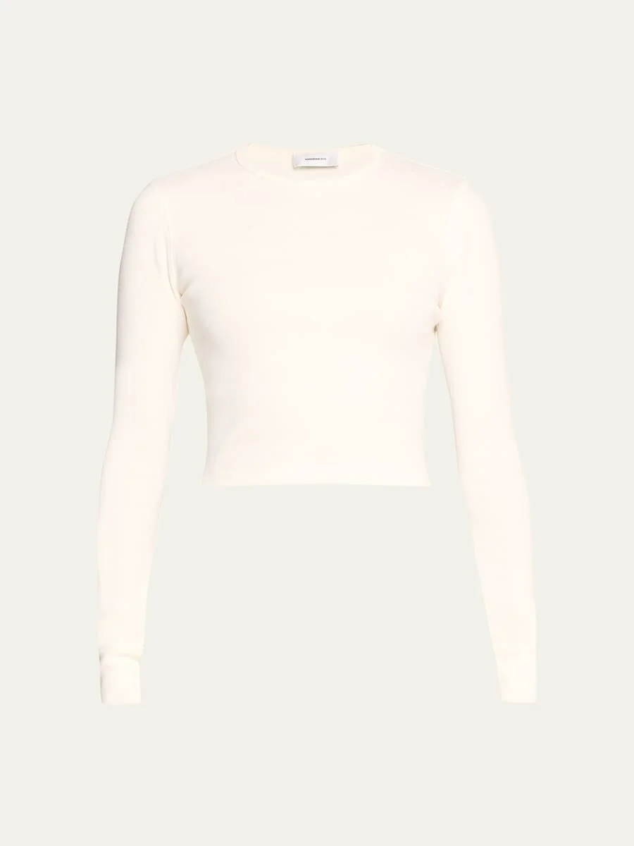 WARDROBE.NYC solid tee Crew neckline Long sleeves Slim fit Cropped length Pullover style Cotton/elastane Made in Portugal