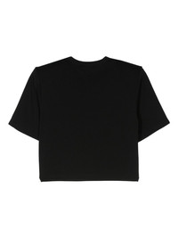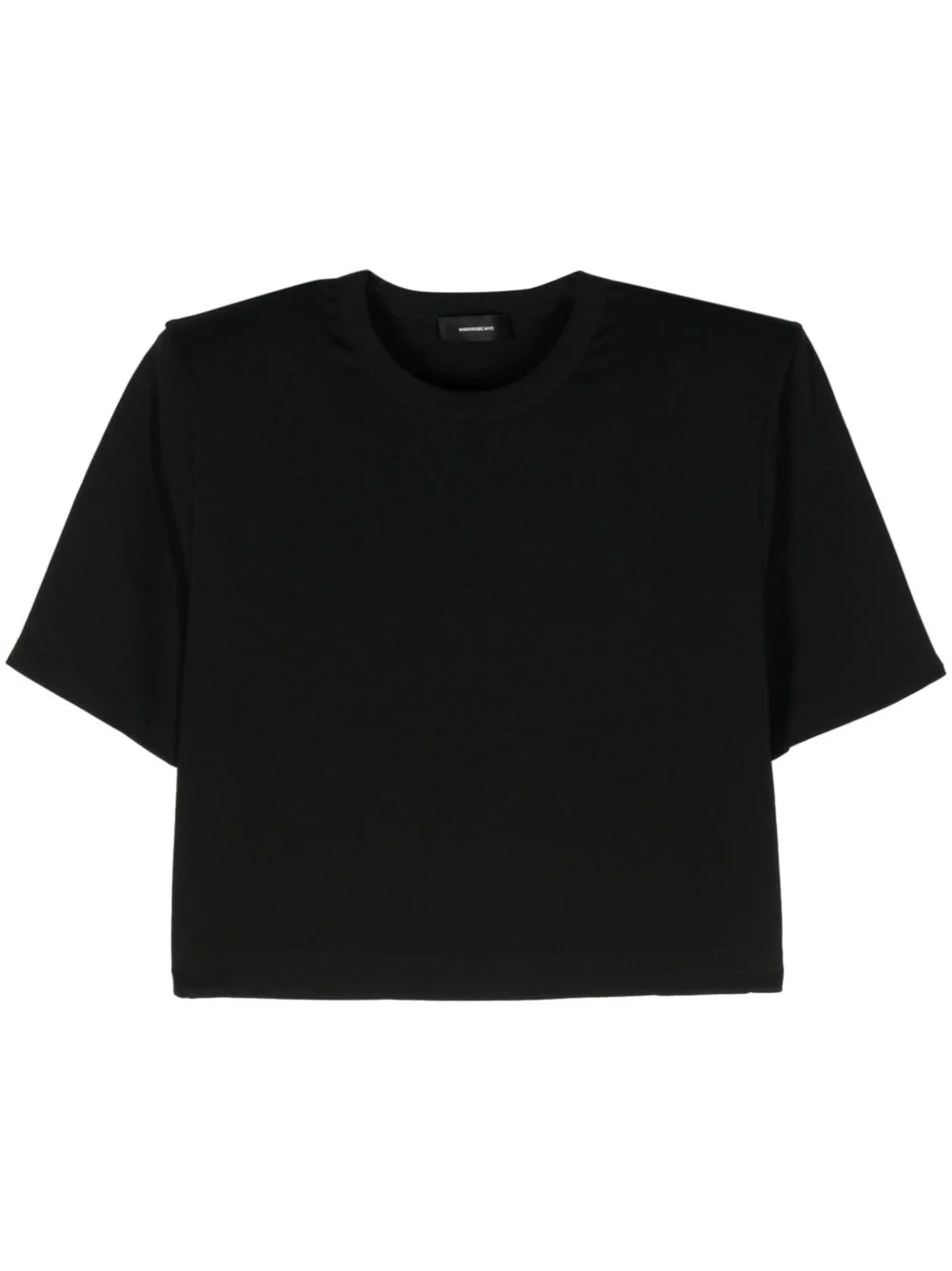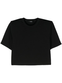 shoulder-pad cropped T-shirt Highlights - Black - Cotton - Jersey texture - Crew neck - Shoulder pads - Short sleeves - Cropped - Straight hem Imported Composition Cotton 100%