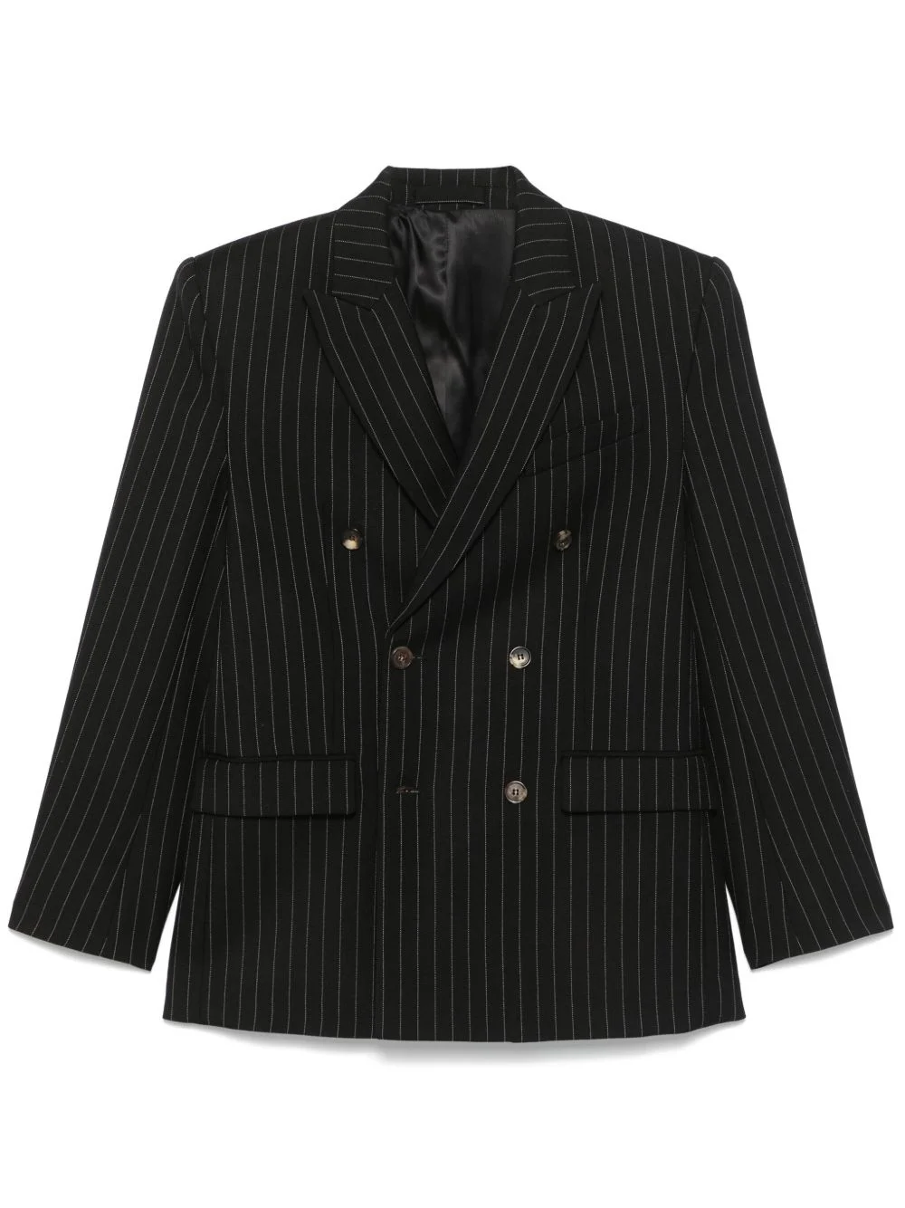 double-breasted blazer Highlights - Black - Double-breasted button fastening - Chest welt pocket - Two side flap pockets - English rear vents Imported Composition Lining: Viscose 100% Outer: Wool 100% SIZE & FIT Model measurements Height 5 ft 10 in(1.78 m) Bust/Chest 33.85 in(86 cm) Hips 36.61 in(93 cm) Waist 26.77 in(68 cm) FittingInformation Designed to be unstructured, offering a loose fit throughout The internal shoulder pads offer a structured shape Made from a midweight non-stretch fabric