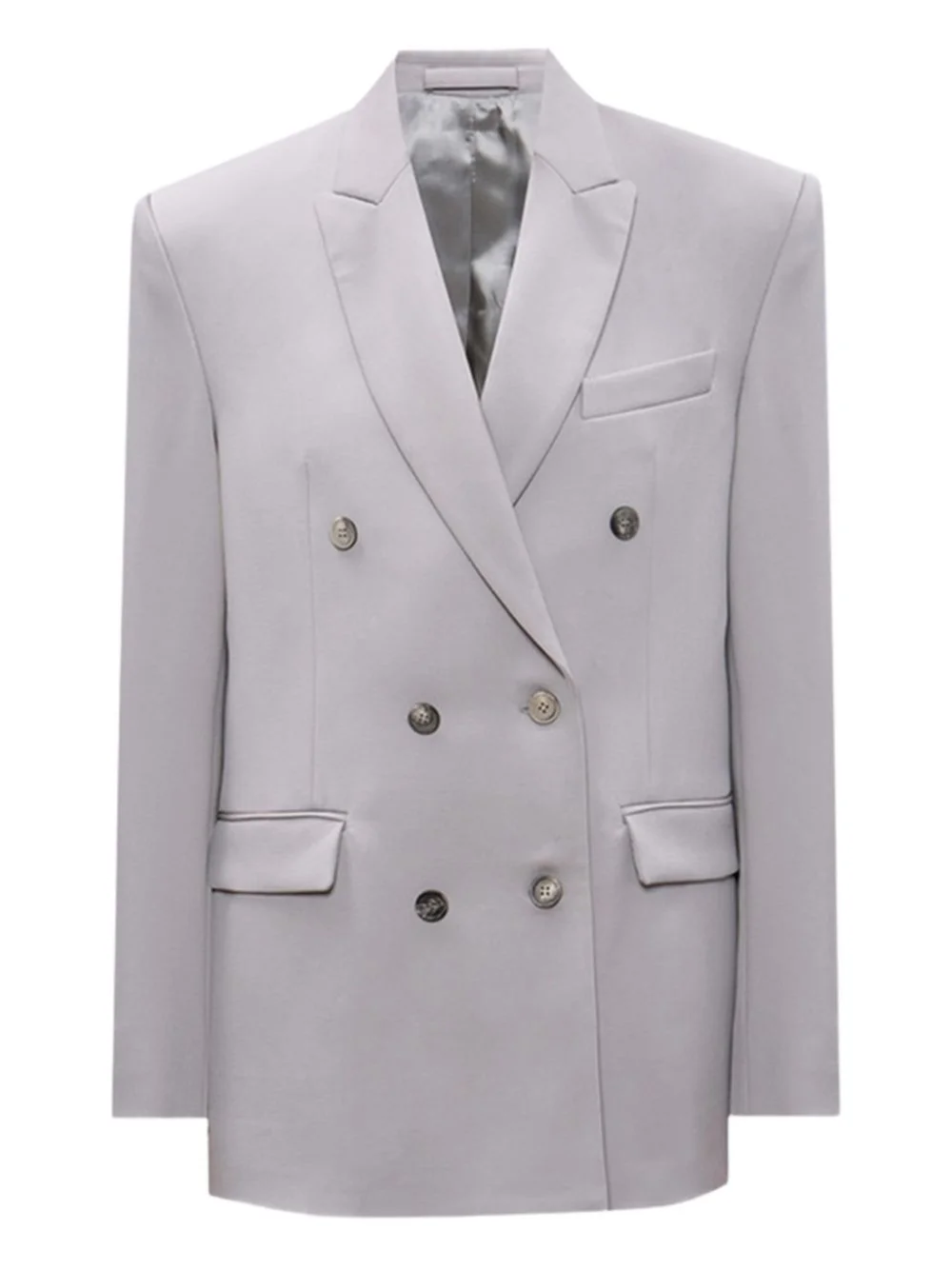 double-breasted blazer Highlights - Grey - Flap pockets - Double breasted - Button fastening - Long sleeves Imported Composition Outer: Virgin Wool 100% Lining: Viscose 100% Washing instructions Dry Clean Only
