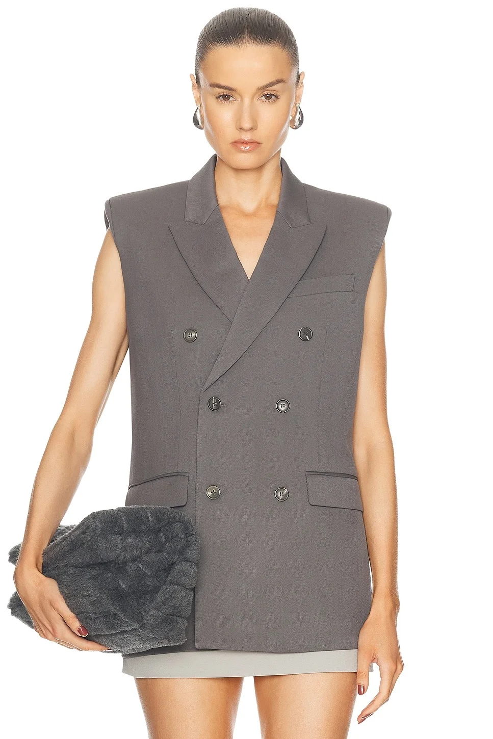 Details - Self: 100% wool - Lining: 100% viscose - Made in Slovakia - Dry clean only - Front double-breasted button closure - Structured padding at shoulders - Front flap pockets - Twill fabric - Our Style No. WNYF-WS121 - Manufacturer Style No. W4074PC