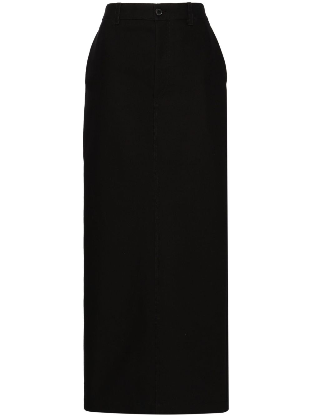 Drill column maxi skirt Highlights - Black - Cotton - Gabardine weave - Belt loops - Button fly fastening - Column silhouette - Two side slit pockets - Two rear welt pockets - Rear slit - Straight hem - Ankle-length Imported Composition Outer: Cotton 100% Lining: Cotton 100% SIZE & FIT Model measurements Height 5 ft 10 in(1.78 m) Bust/Chest 33.07 in(84 cm) Hips 36.61 in(93 cm) Waist 24.8 in(63 cm) FittingInformation This maxi-length skirt is intended to be worn just below the waist Made from a midweight non-stretch fabric This piece fits true to size – take your usual size