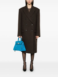 HB coat Highlights - Coffee brown - Double-breasted button fastening - Chest welt pocket - Two side flap pockets - Long sleeves Imported Composition Lining: Viscose 100% Outer: Wool 100% SIZE & FIT Model measurements Height 5 ft 10 in(1.78 m) Bust/Chest 33.07 in(84 cm) Hips 36.22 in(92 cm) Waist 24.4 in(62 cm) Measurement BUST 44.01 in(111.8 cm) LENGTH 44.01 in(111.8 cm) WAIST 15.74 in(40 cm) SLEEVE LENGTH 25.98 in(66 cm) HIPS 42 in(106.7 cm) FittingInformation Designed for an oversized fit, offering additional room throughout The internal shoulder pads offer a structured shape Made from a midweight non-stretch fabric
