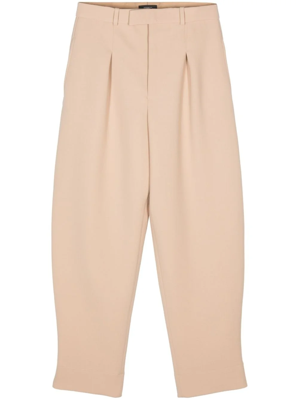 HB tailored trousers Highlights - Biscuit beige - Virgin wool - Belt loops - Two side inset pockets - Front pleat detailing - Full-length - Rear flap pocket - Tapered leg - Concealed front hook and button fastening Imported Composition Lining: Cotton 100% Outer: Virgin Wool 100% SIZE & FIT FittingInformation Designed for a tapered fit, these trousers allow for a close fit at the waist and a loose unrestricted fit over the leg with a closer fit towards the ankle Made from a midweight non-stretch fabric