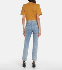 A classic addition to your denim repertoire, these blue washed jeans from Wardrobe.Nyc are cut to a high-rise. The pair is made in the USA and offers a five-pocket design. Product Details - Pockets: five pockets - exclusive to mytheresa.com - Care instructions: machine wash cold - Designer color name: Blue - Closure: zipper fly, button fastening - Made in the USA - Material: 100% cotton - Item number: P00480903 Size & Fit - True to size - Fitted - Mid-weight material - Non-stretchy fabric - High-waisted - The model seen in the picture is 178cm-5'10" and wearing a size 26