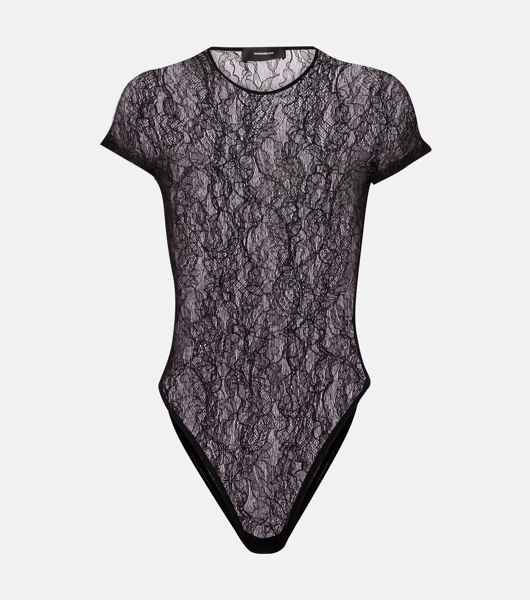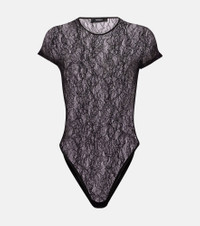 Wardrobe.NYC's elegant everyday essentials are produced in limited quantities with versatility, supreme quality, and modern urban life at their core. Made purely from black lace, this bodysuit features short sleeves and high-cut leg openings. Product Details - Material: 85% polyamide, 15% elastane - Care instructions: machine wash cold - Made in Portugal - Designer color name: Black - Item color: black - Item number: P01059026 Size & Fit - True to size - Fits small to size - we recommend trying one size larger - Close fit at the neck - Semi-sheer - Fitted - Stretchy fabric - High-cut leg - The model seen in the picture is 178cm-5'10" and wearing a size XS