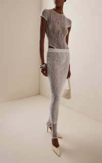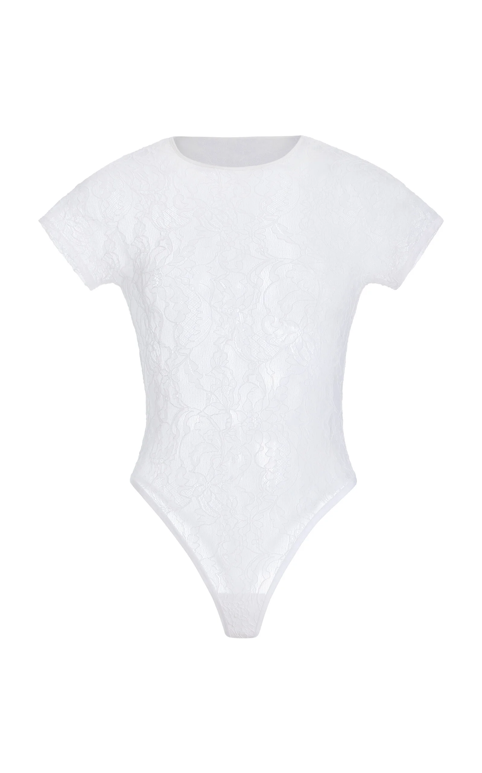 The brainchild of Vogue Australia stylist Christine Centenera and designer Josh Goot, Wardrobe.NYC represents the ultimate in luxurious staples. Cut in an intricate, lightweight Italian stretch lace and featuring seamless cap sleeves. Design details also include a refined crew neckline and high-cut leg opening with adjustable snap closures. PRODUCT DETAILS - Pre-Fall '25 - Snap fastening - Composition: 85% polyamide, 15% elastane - Dry clean - Made in Portugal SIZE & FIT - Designed for a slim fit