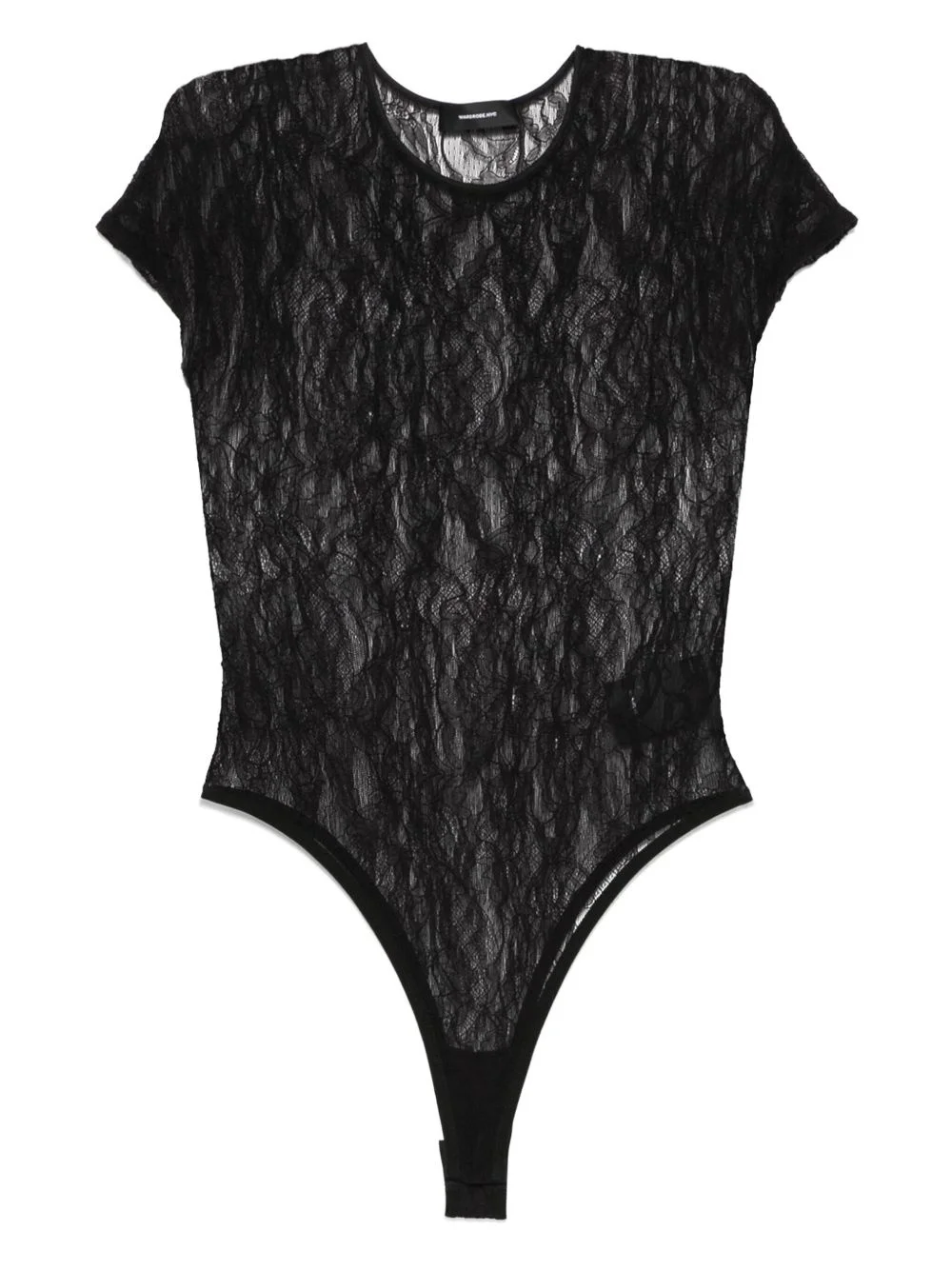 lace-detailing bodysuit Highlights - Black - Press-stud fastening - Sheer - Round neck - Short sleeves - Just a reminder that this piece must be tried on over your own garments. Imported Composition Polyamide 85%, Spandex/Elastane 15% SIZE & FIT Model measurements Height 5 ft 9 in(1.75 m) Bust/Chest 34.64 in(88 cm) Hips 36.61 in(93 cm) Waist 26.37 in(67 cm) FittingInformation Designed for a close fit throughout Made from a midweight stretch fabric, this piece offers elasticity and flexibility when worn Washing instructions Do Not Wash/Do Not Dry Clean